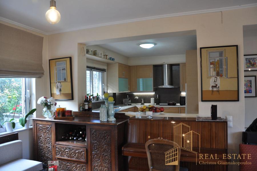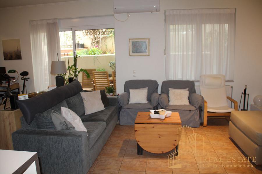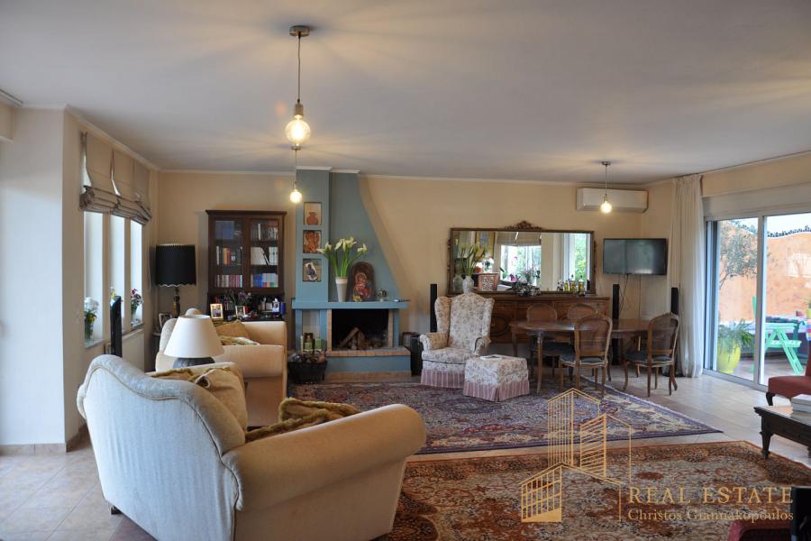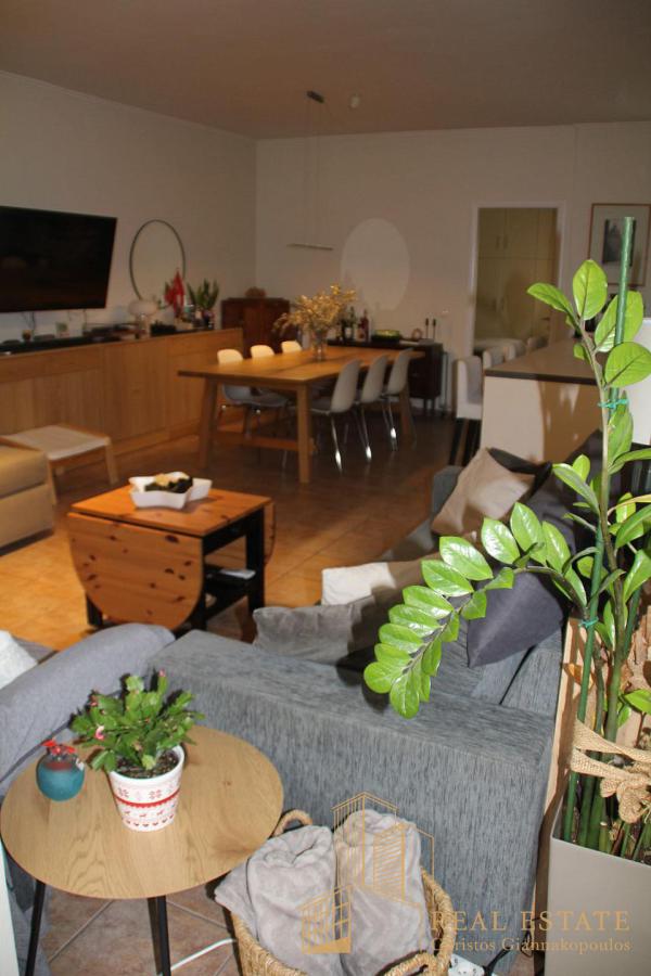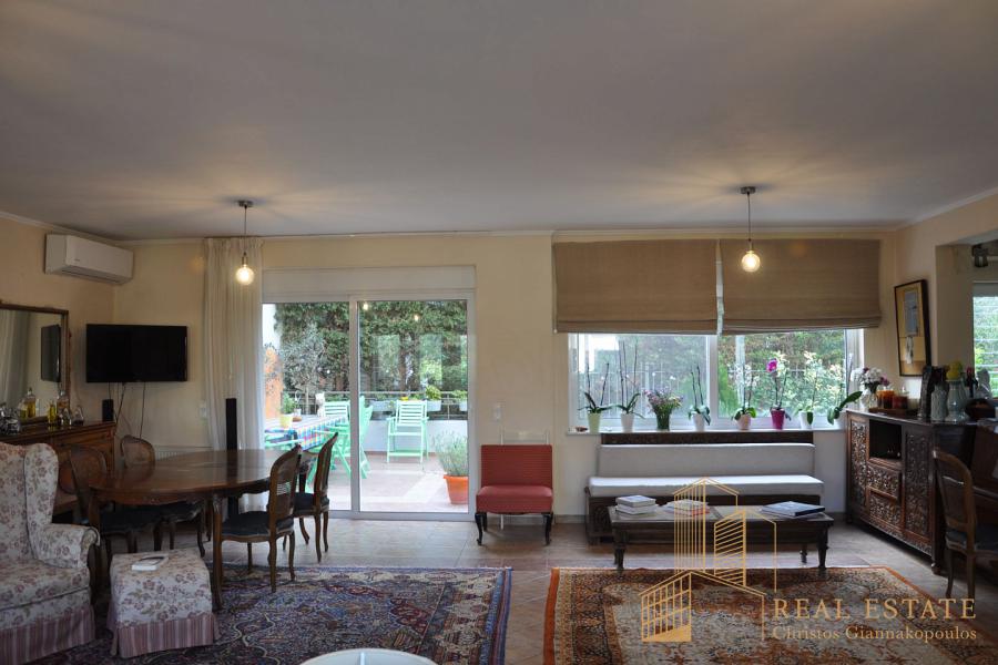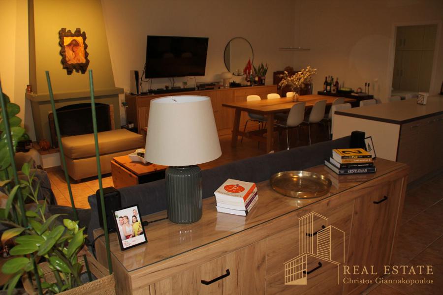 Ημιυπόγειο 121 τμ, πλήρως φωτεινό, διαμπερές. Διαμορφωμένο ώστε να λειτουργεί και ως αυτοτελές διαμέρισμα με σαλόνι με τζάκι, κουζίνα, 2 ΥΔ, μπάνιο.