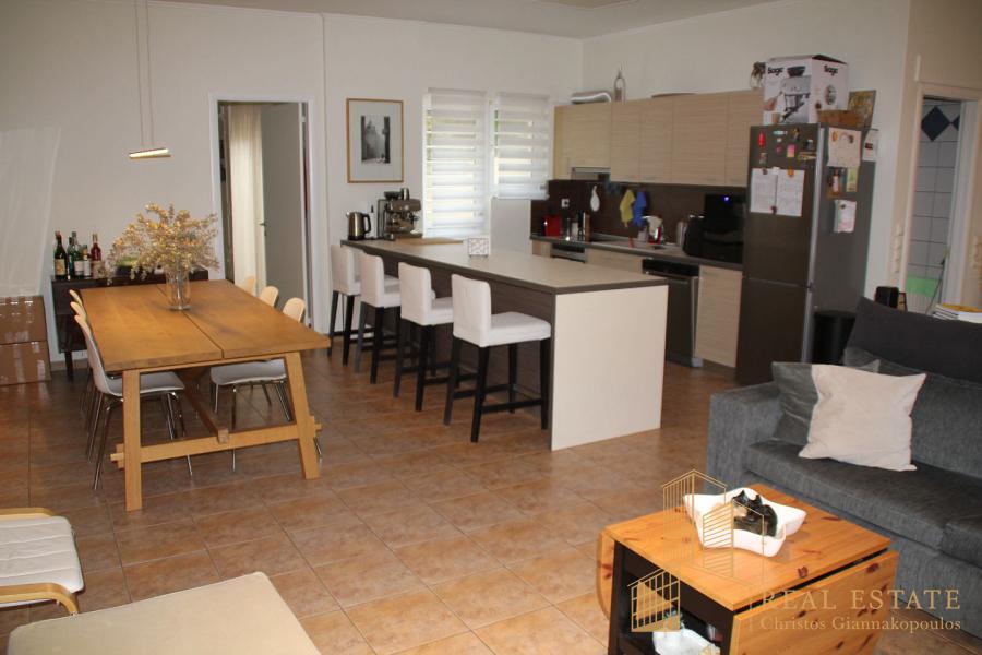 Ισόγειο υπερυψωμένο 101 τμ αποτελείται από σαλόνι με τζάκι, τραπεζαρία, κουζίνα και wc.
